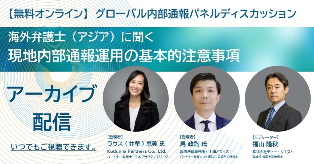 グローバル内部通報パネルディスカッション ~海外弁護士(アジア)に聞く現地内部通報運用の基本的注意事項~ |